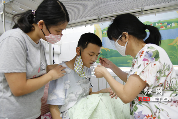 红网长沙7月26日讯(时刻新闻记者 刘露 通讯员 章贵阳)13岁,本该是个无忧无虑的年纪,可就在1个月前花季少年王任却被查出不幸患上了白血病。病魔无情,人间有爱。7月26日下午,在湖南省人民医院住院的王任迎来了一批爱心人士的看望。