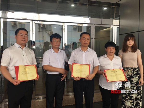 长沙市慈善会给爱心人士颁发捐赠证书。