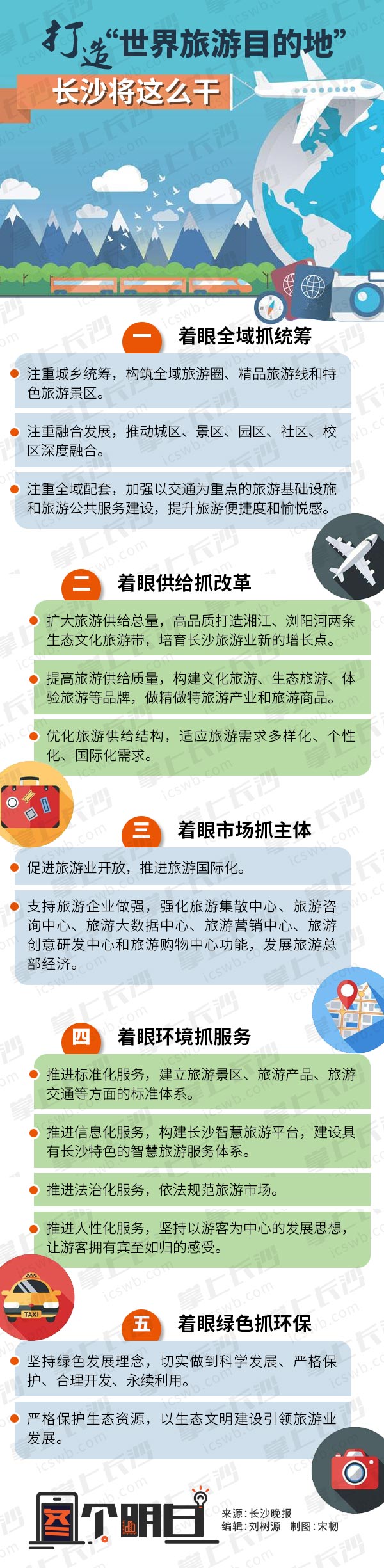 二要着眼供给抓改革。要扩大旅游供给总量,高品质打造湘江、浏阳河两条生态文化旅游带,培育长沙旅游业新的增长点。要提高旅游供给质量,构建文化旅游、生态旅游、体验旅游等品牌,做精做特旅游产业和旅游商品。要优化旅游供给结构,适应旅游需求多样化、个性化、国际化需求。