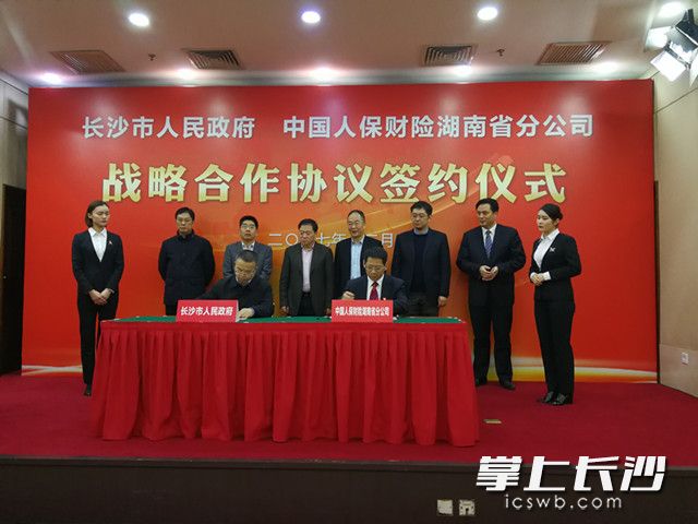 昨日下午,长沙市人民政府与中国人保财险湖南省分公司签署战略合作协议。长沙晚报记者 朱敏 摄