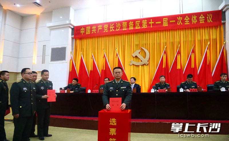 昨天下午,长沙警备区党委十一届一次全会召开。图为代表们在投票选举。 长沙晚报通讯员 徐诗玉摄