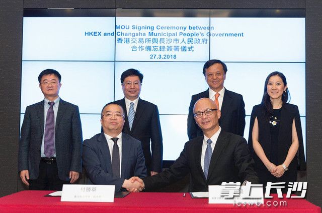 胡衡华在签署仪式上致辞,高度肯定香港交易所近年来取得的发展成就。胡衡华指出,近年来,长沙以智能制造引领产业转型升级、引领产业价值链提升,高新技术产业总产值突破万亿元,在生物医药、电子信息、新材料、互联网等领域涌现出一大批“隐形冠军”企业和创新型企业;通过加强政策引导,全力服务企业上市,2017年长沙新增上市公司12家,总数达到66家,A股上市公司数量和市值均居中部省会城市首位。特别是随着长沙与香港两地交流日益增多,经贸合作不断扩大,香港交易所上市制度改革为长沙市加大企业上市力度提供了难得契机,开辟了新的渠道,签署战略合作备忘录对双方来说是共赢之举。