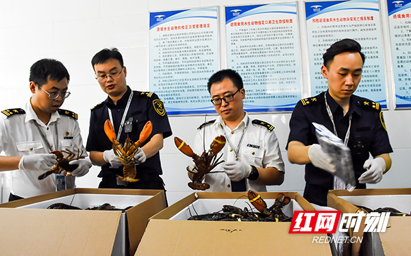 红网时刻长沙7月21日讯(记者 熊晓宇)随着一架没有窗户的大型飞机落地在长沙黄花国际机场,湖南走向世界又迈出了一大步。北京时间2018年7月21日9时38分,来自加拿大的100吨波士顿活龙虾搭乘波音747货运专机,经过17个小时的飞行降落到黄花机场,标志着湖南首条定期洲际全货机航线——长沙-北美定期洲际全货机航线首航完成。