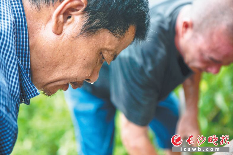 河岸土坡上,村民们挥起锄头,逐一挖去管道旁的土块和杂草,豆大的汗珠从他们眼睑、鼻头处滴下来。在烈日之下奋战1个多小时,他们终于开辟出一块平整的地方用于放置新电机。