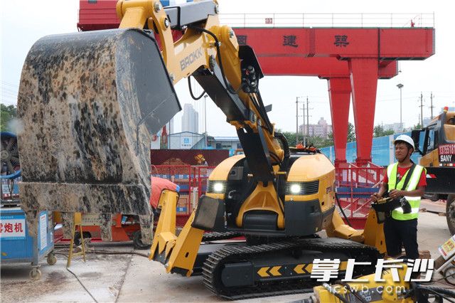 中国建筑长沙地铁6号线六工区引进一台自行式遥控破拆机器人,该机器人将投入运用至6号线岳六区间隧道开挖。长沙晚报记者 陈焕明 通讯员 张睦欣 摄
