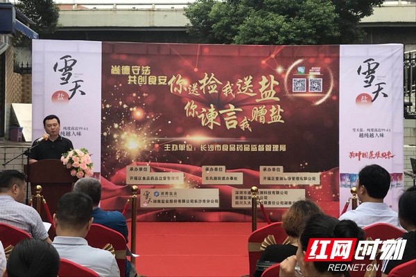 8月24日上午,2018年长沙市食品安全宣传周“你送检我送盐、你谏言我赠盐”在开福区沙湖桥农贸市场启动。