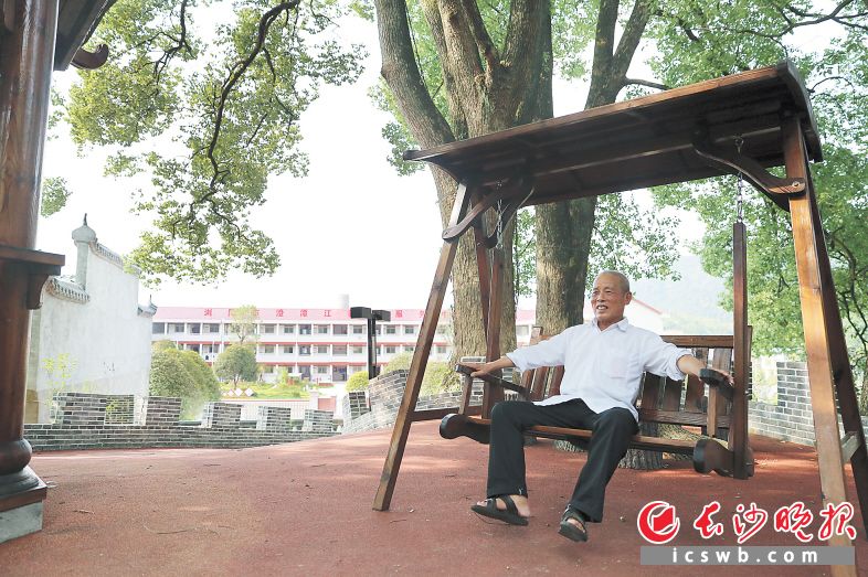 在澄潭江敬老院附近的月形湾屋场,一位老人在古树下休闲。均为颜开云 李广军 摄影报道