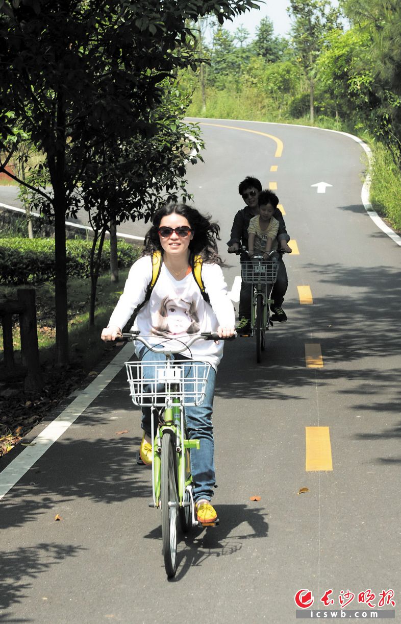 游客在金井镇湘丰村的茶园中享受绿色骑行的乐趣。