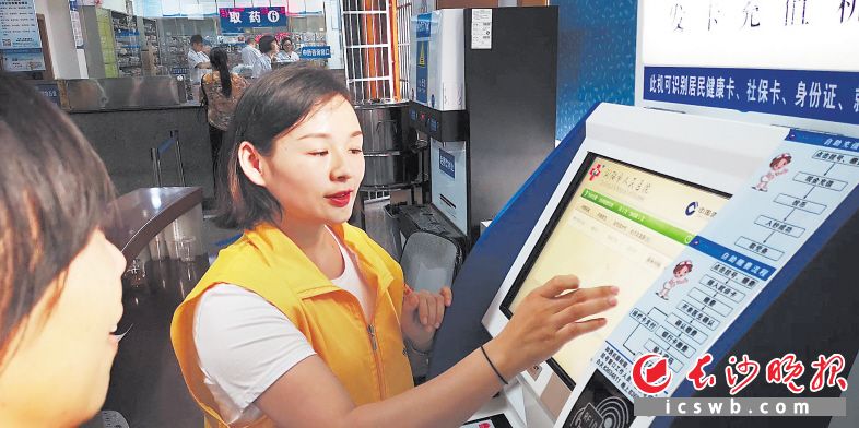 医院工作人员指导患者使用“一卡通”平台。长沙晚报通讯员 熊剑 摄