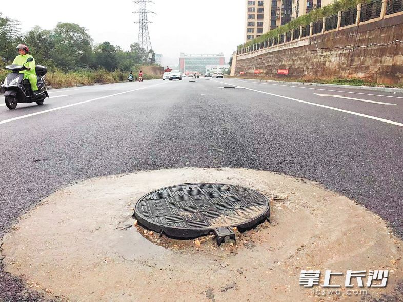 由于港子河路尚未全部完工,不少井盖凸出来,没有被填平,存在安全隐患。长沙晚报记者 邓艳红 摄