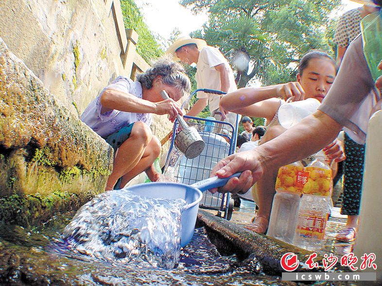 到白沙古井取一瓢清凉的井水,是长沙市民消暑的好方式。长沙晚报记者 贺文兵 摄