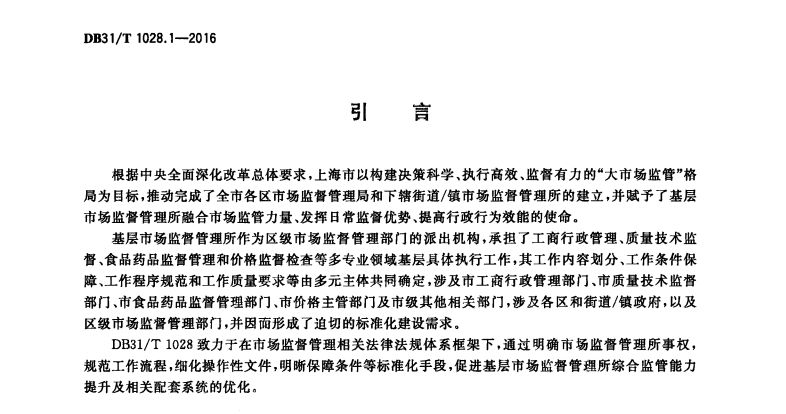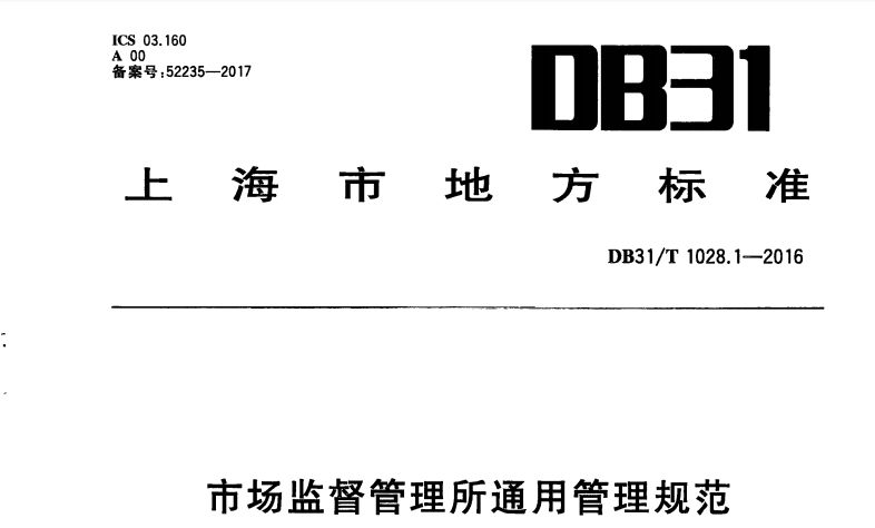 2017年3月1日,国内首部具体指导市场监管所工作的地方标准《市场监督管理所通用管理规范第1部分:基本要求》和《市场监督管理所通用管理规范第2部分:业务规范》正式发布,为促进市场监管部门进一步由“物理整合”向“化学融合”转变提供了首个“试验规程”。并通过在浦东等地试点,逐步形成了一套基层所建设的标准体系,为全市基层市场监管所规范建设探索出一条新路。