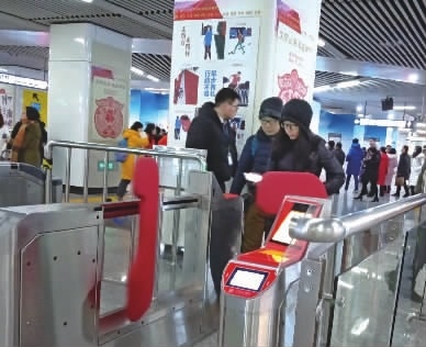 2月19日,长沙地铁五一广场站,长沙市民许小姐正在刷手机扫码出站。