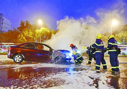 2月20日18时40分,长沙市三一大道国防科技大学路段,一台小车在行驶途中起火自燃。附近的消防人员接警后随即赶到现场实施救援,3分钟后,大火被成功扑灭。 湖南日报记者 童迪 摄 来源:湖南日报 作者:童迪 编辑:唐甬梅