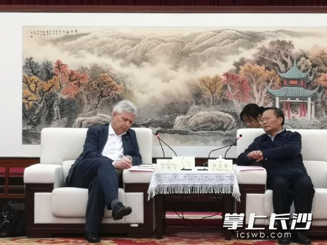 今日,胡忠雄会见了英中贸易协会总裁卢墨雪一行。图片均由长沙晚报通讯员 袁静 摄