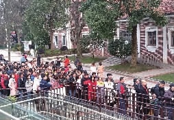 2月24日,橘子洲梅花盛开,游人如织。17时30分许,地铁2号线橘子洲站2号进出口外面,游客排起了五六十米的长队。 老茧 陈月红 摄