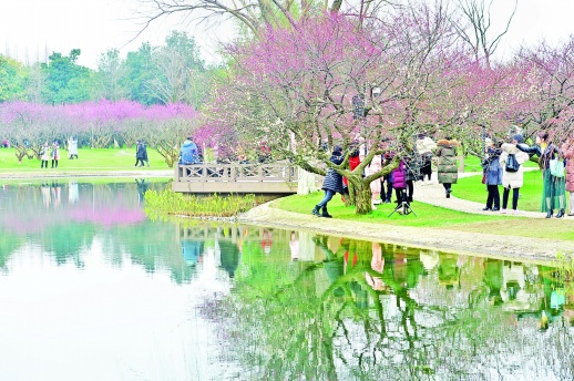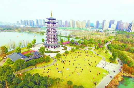 图③ 人们在长沙洋湖湿地公园游园踏青。