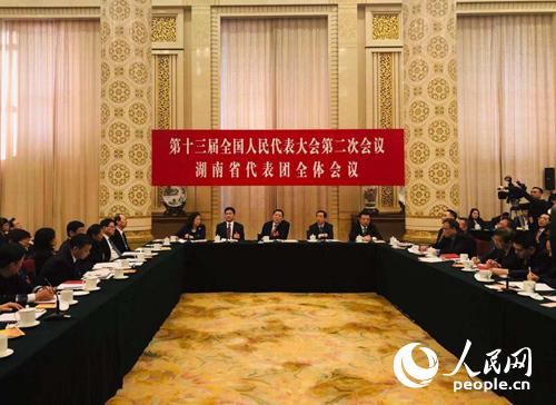 3月7日下午,中外媒体聚焦十三届全国人大二次会议湖南代表团开放日。(人民网 孙阳摄)