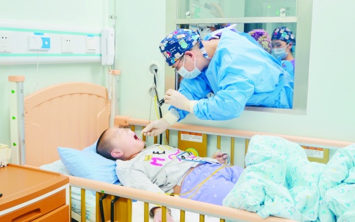 3月18日23时10分,湖南省儿童医院血液内科移植病房,医生准备为小佳进行干细胞移植。这是该医院进行的首例无关供者造血干细胞移植。 湖南日报记者 李健 通讯员 姚家琦 摄影报道