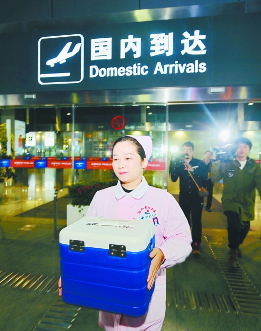 3月18日22时13分,长沙黄花国际机场,医务人员抱着刚送达的186ml外周血造血干细胞赶赴湖南省儿童医院。今年10岁的小佳来自新化县,被诊断为极重型再生障碍性贫血,病情十分危重。历经2个多月的寻找,在中华骨髓库的250余万名志愿者中,幸运找到造血干细胞HLA配型能够与小佳完全匹配的一名上海23岁的女大学生。该医院第一时间派出医生飞往上海“取血”。