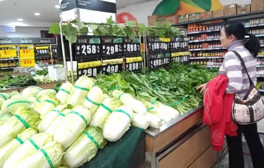 天气回暖,叶类蔬菜供应增多,超市里“二元菜”也多了起来。 记者 陈月红 摄