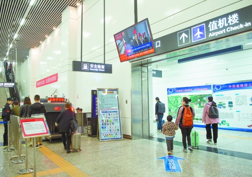 3月31日,长沙磁浮高铁站,磁浮城市航站楼正式启用,楼内具备航班显示及查询、值机办理、行李托运等机场综合服务功能,旅客在此办理完登机手续后乘磁浮列车前往黄花国际机场,到达机场后即可直接通过安检登机。 傅聪 摄