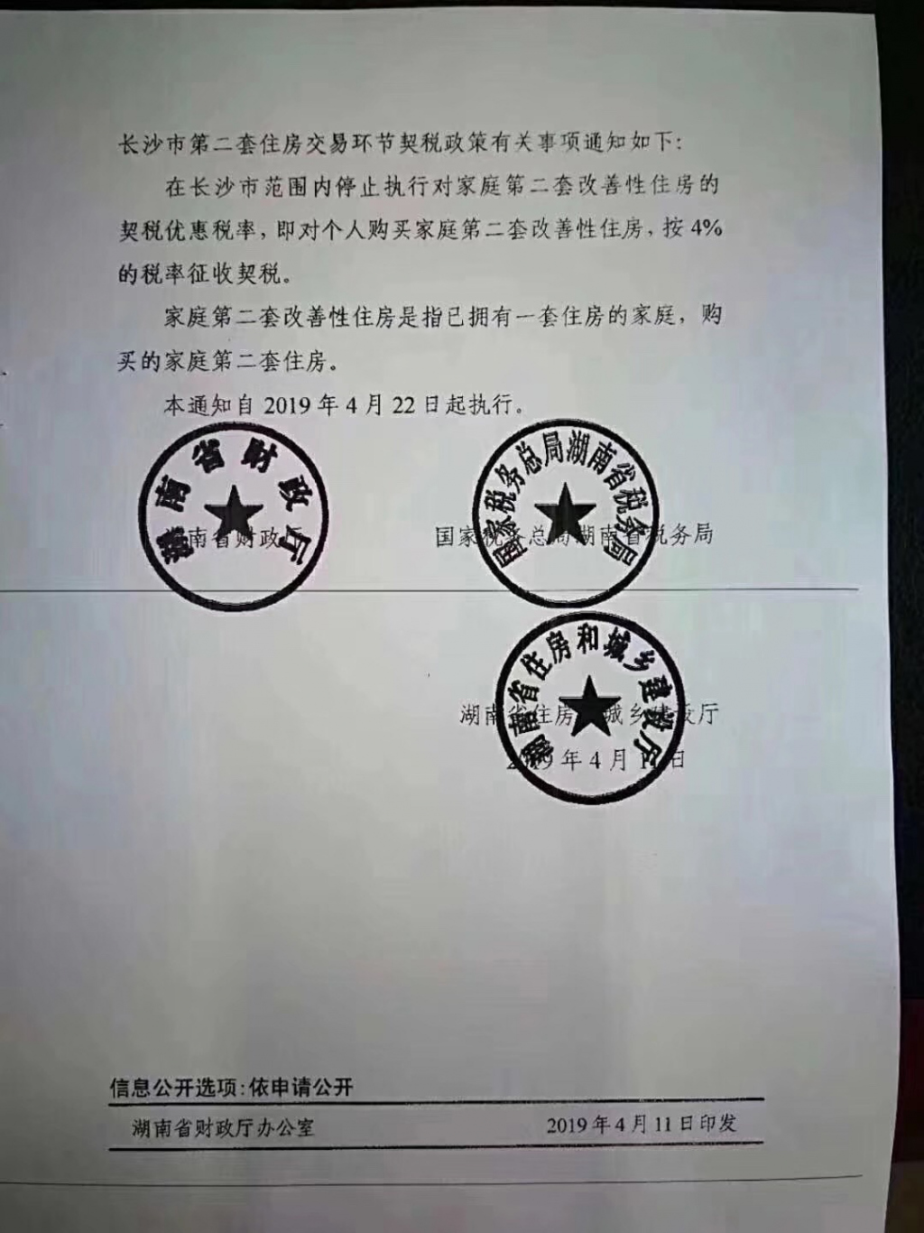 日前,湖南省财政厅、国家税务总局湖南省税务局、湖南省住建厅下发《关于调整长沙市第二套住房交易环节契税政策的通知》(以下简称通知),通知要求在长沙市范围内停止执行对家庭第二套改善性住房的契税优惠政策,即对个人购买家庭第二套改善性住房,按 4% 的税率征收契税。