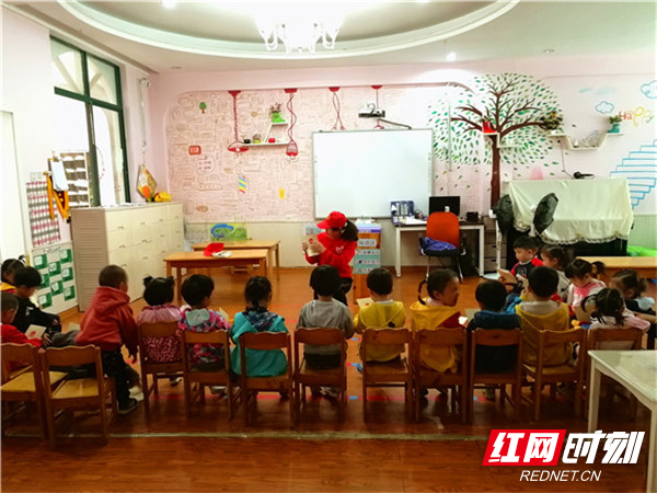 社区网格文明宣讲员用通俗易懂的语言向小朋友们讲解《长沙市文明行为促进条例》。