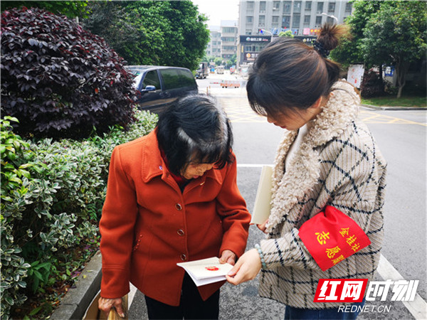 金桂社区文明志愿者向辖区居民发放《长沙市文明行为促进条例》。