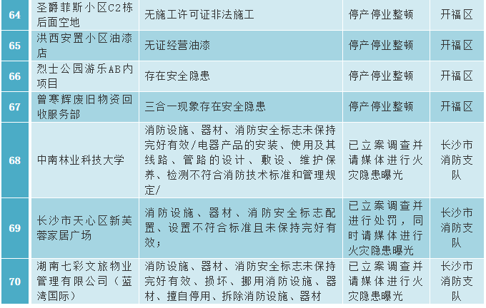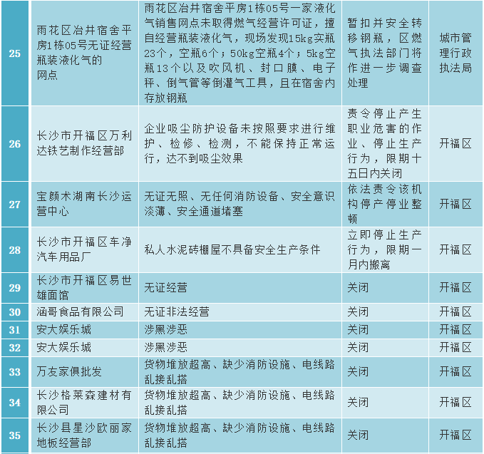 为坚决稳住我市安全生产稳定向好态势,全力维护人民群众生命财产安全和社会稳定,为新中国成立70周年创造安全稳定环境,从2019年3月开始,全市各级负有安全生产监管职责的部门以“查大风险、除大隐患、防大事故”为重点,集中组织开展安全生产领域“大排查、大体检、大整治”行动和“强执法防事故”专项行动,依法查处了一批安全生产非法违法违规企业。根据相关工作要求,现公示关停的70家企业名单(附后)。