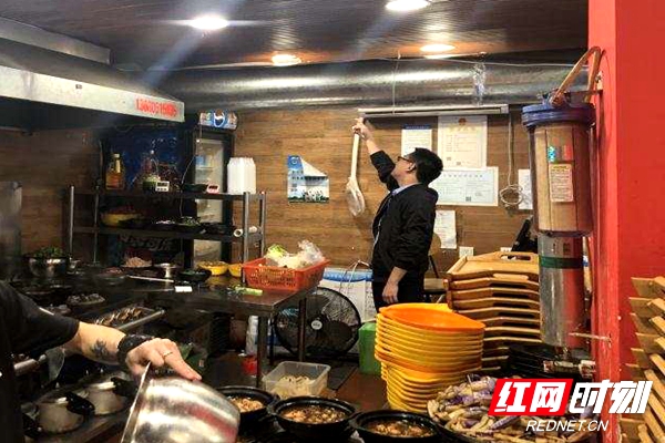 市场监管所工作人员对辖区内所有餐饮门店进行逐户上门检查。