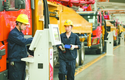 在18号厂房,各个环节紧密协作,通过最后一道检验工序后,喷涂着“SANY”品牌标识的混凝土泵车等设备,“肩负”着各自使命,奔赴世界各地。