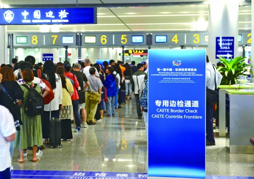为了确保参会来宾出行顺畅,长沙机场在T2航站楼的到达层,开辟了醒目的中非经贸博览会“专用边检通道”;并且,国际安检区及通道由原来的12米扩宽至34米,安检道口由原来错列式4个升级为并排式8个;还设置了专门的值机柜台,国际旅客进出港的等候时间将大幅缩短。