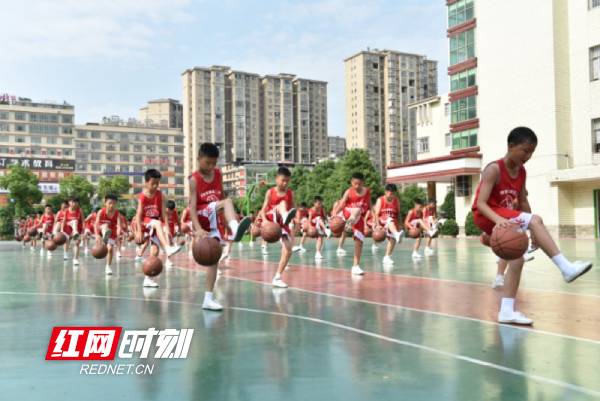 参加篮球操表演的小朋友们个个精神饱满,动作整齐划一。