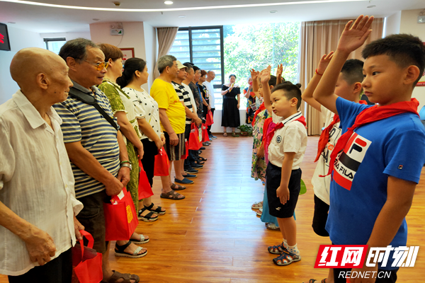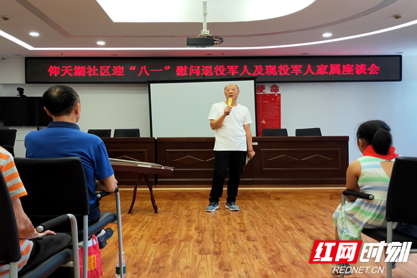 红网时刻长沙7月31日讯(通讯员 陈倩)“我们是共产主义接班人,继承革命先辈的光荣传统,爱祖国,爱人民,鲜艳的红领巾飘扬在前胸……”7月31日,会议室传来一片清脆的歌声。在“八一”建军节即将到来之际,长沙天心区裕南街街道仰天湖社区党总支组织开展了迎“八一”慰问退役军人及现役军人家属座谈会活动,共有13名退役军人、现役军人家属以及30余名青少年儿童参加。