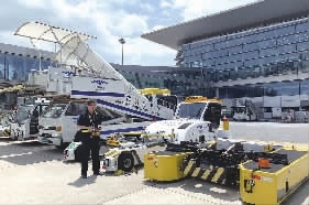 “这么一台设备,可以移动100吨以下的飞机,目前已涵盖了波音737、757全系列,空客320、321、319全系列。我们这个设备移到飞机前面,把飞机推到位,再返回停到相应位置,只用不到1度电。”长沙机场机务保障部工作人员周宇群指着停机坪内一台电动遥控牵引车介绍说。