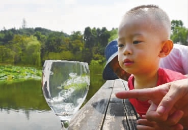 9月5日,长沙尖山湖公园,市民近距离观看从湖水里捞上来的桃花水母。桃花水母是名副其实的“活化石”,被称为“水中大熊猫”,对生长环境很挑剔。桃花水母的频频出现反映了该公园水环境治理的卓有成效。(田超) 来源:三湘都市报 编辑:唐甬梅