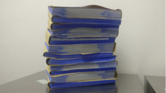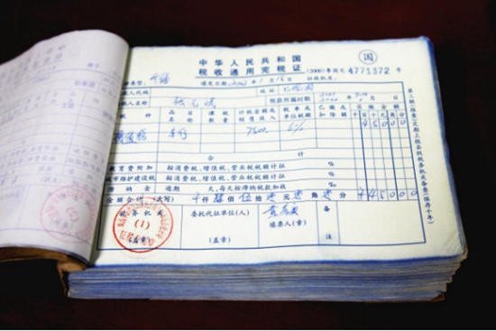 厚厚的一叠账本,每月都需要对开具的票证进行整理装订(图片来源:国家税务总局)