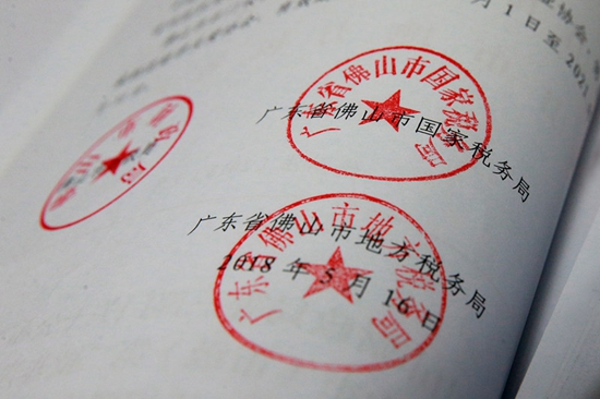 “这就是80年代初财税分家时税务局所用的公章。”国家税务总局佛山市税务局档案管理员翻开泛黄的文件资料,深红色的印油为这份1984年的文件盖下“佛山市税务局”的落款。