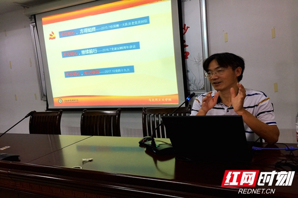 中南林业科技大学教授邓集文以“不忘初心、牢记使命”为题进行了专题辅导。