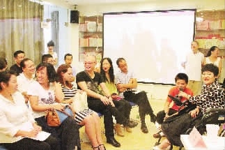 李丽(右一)在湘园社区开展家庭教育沙龙活动。