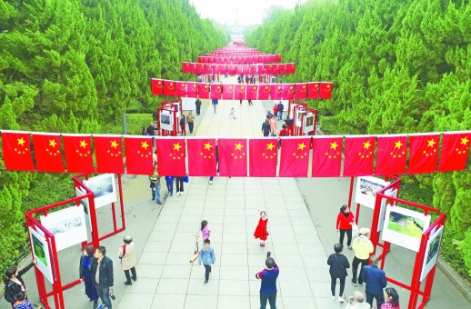 10月7日,湖南烈士公园,游人在观看“爱上湖南”摄影展。影展从我省经济建设、环境改善和衣食住行等方面,生动展现了70年来三湘大地所发生的翻天覆地的变化,吸引众多市民和游客驻足观看。(李健) 来源:湖南日报 编辑:唐甬梅