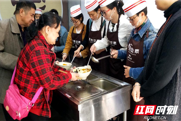 “雨花斋”是面向老年人的一个公益性免费互助素食餐厅。活动开始后,餐厅工作人员首先给党员志愿者,介绍义工的服务内容,学习服务礼仪以及服务中的注意事项,大家一起观看了“感恩”视频,学习了传统家道、孝道文化等中华民族传统美德。随后,党员志愿者各司其职,各尽其责,开始择菜、洗菜、切菜、揉面等工作,为午餐期间前来就餐的群众端水、盛饭、分菜。“今天的志愿者,个个精神饱满,服务贴心,感觉特别亲切。”就餐的群众看到党员志愿者认真贴心地开展志愿服务,纷纷点赞。