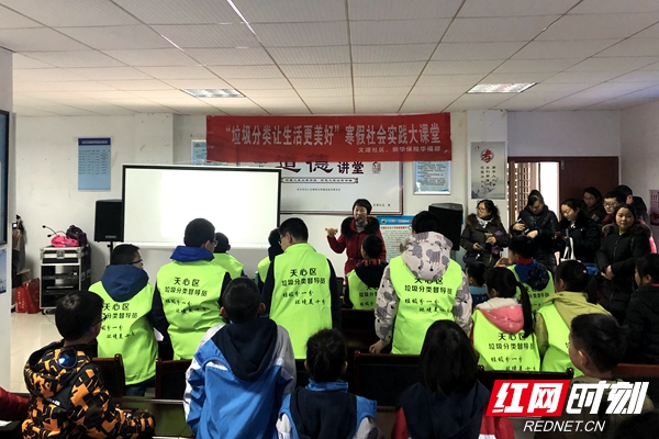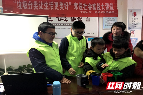 1月16日上午,长沙市天心区文源街道文源社区党总支联合新华保险华福部志愿者共同开展了“垃圾分类让生活更美好”为主题的寒假社会实践活动,活动邀请了长沙市“五老”金牌讲师团的陈湘江老师为参加活动的50余名学生和家长们授课。