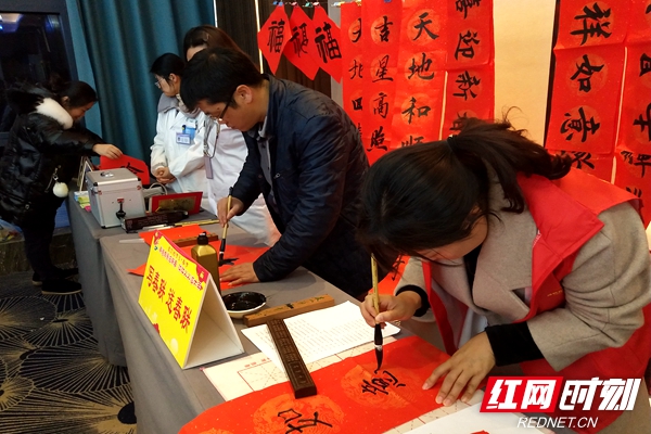书法志愿者们为居民现场写春联、送“福”字,“年味”十足。