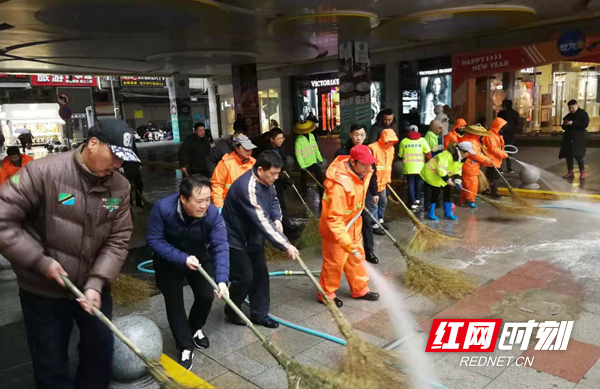 红网时刻长沙1月22日讯(通讯员 符绿英)为迎接“新春佳节”的到来,1月22日上午,长沙市天心区坡子街街道城管办及辖内社区工作人员、协管员、志愿者、玉禾田公司保洁人员等300余人,开展了以坡子街、五一商圈为重点的节前大扫除行动。