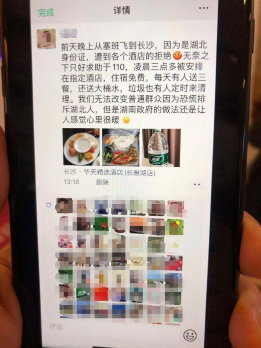 一方有难,八方支援。武汉爆发的天灾很无情,但人间自有真情在,湖南湖北一家亲,湖南政府的安排安置工作十分细心、无微不至,对于在外暂时无法回家的湖北人真的很暖心。其实各地方政府真的很努力做好工作,我们已发朋友圈宣传此次善举,让正能量大于谣言。(潘东晓 姜国)