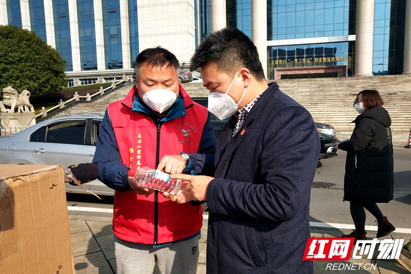 红网时刻长沙1月30 日讯(记者 周昂 通讯员 严晋)1月30日上午十点,由长沙天心区暮云小蜜蜂志愿者协会筹集而来的数十把红外体温测量仪、5000个医用口罩、300瓶医用消毒酒精、300多箱水果送达区政府前坪,各“疫线”工作人员正有序排队,按需按量领取。