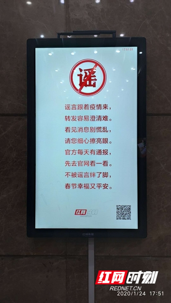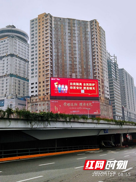 从1月24日起,红网时刻LED联播网通过"千屏联播"的方式,共推出宣传习近平总书记重要指示、居家劝导、防控要领等相关海报30个,同时每日更新抗击疫情动态新闻,每天超20张画面以每张海报每天不低于200频次滚动播出,共播出近550万频次,持续振奋精神、凝聚力量,为打赢疫情防控阻击战提供有力舆论支持。