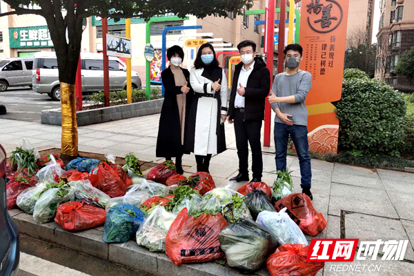 许兴村组织农户捐赠自家种植的蔬菜到丽发社区。